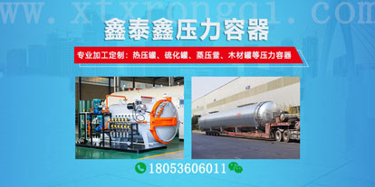 您好,歡迎來(lái)到山東鑫泰鑫智能裝備有限公司網(wǎng)站!我們?yōu)槟峁└鞣N規(guī)格的硫化罐、熱壓罐、蒸壓釜、木材罐等壓力容器設(shè)備及服務(wù)。